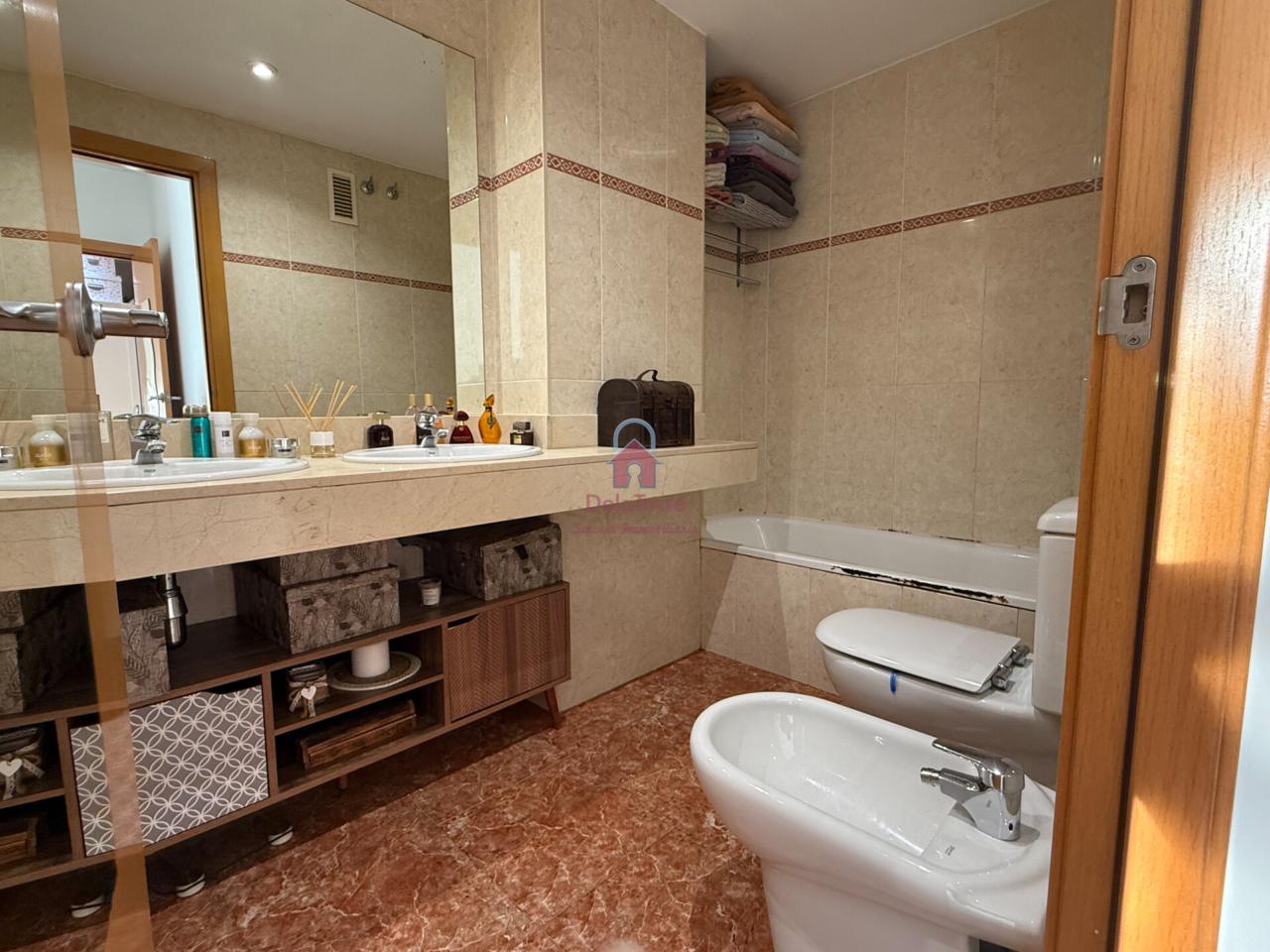 Cuenta con una superficie construida de 80m², con comedor exterior a amplio balcón, con espacio para mesa y sillas, y con vistas a la zona comunitaria con piscina. Dispone de tres dormitorios y dos baños completos. Además incluye una plaza de aparcamiento en la misma finca.
