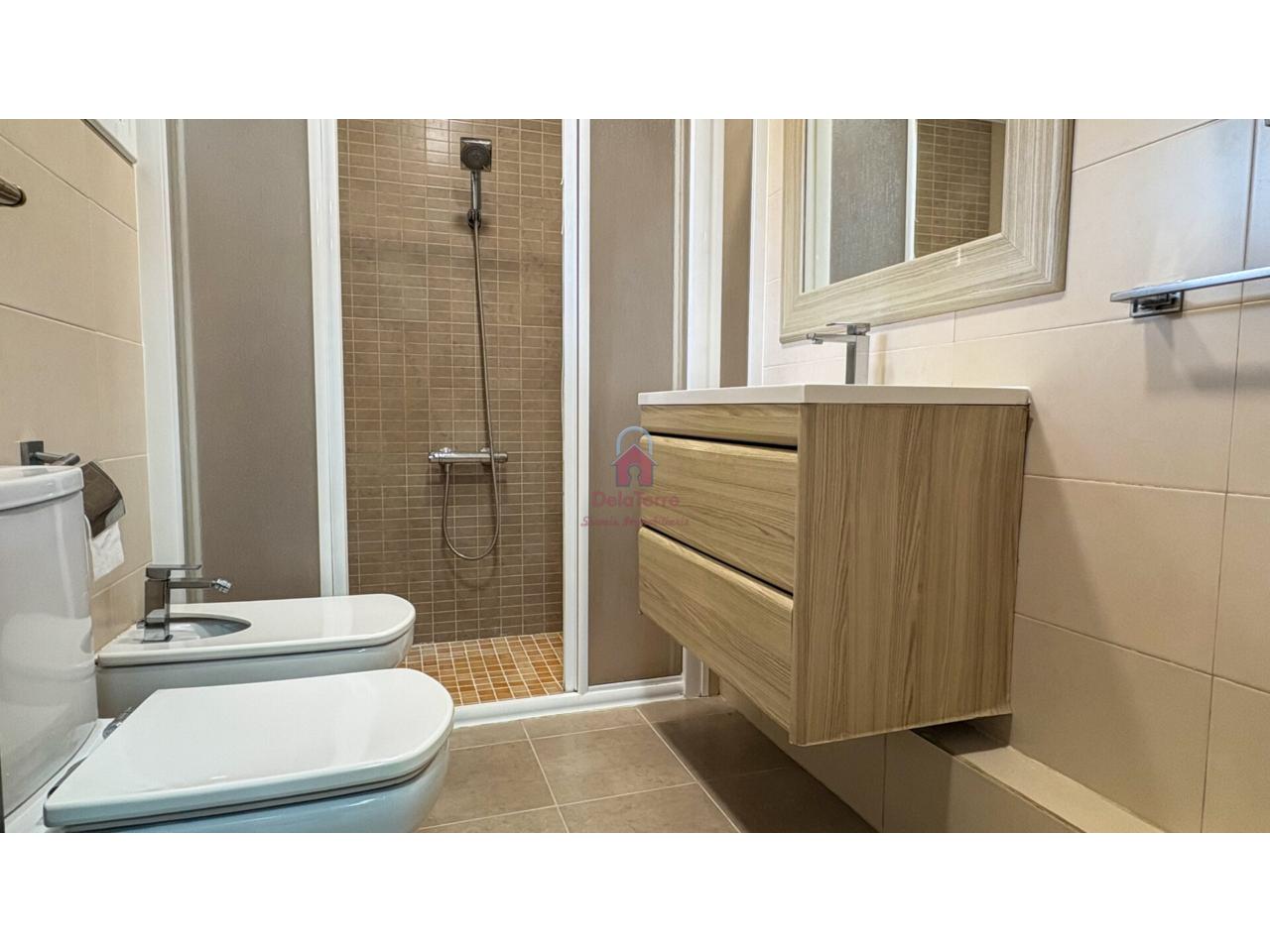 Los acabados son: · Suelos de gres. · Carpintería interior de nogal. · Carpintería exterior de aluminio doble. · Calefacción de gas natural. · Aire acondicionado, con Bomba de calor en comedor y distribuidor.