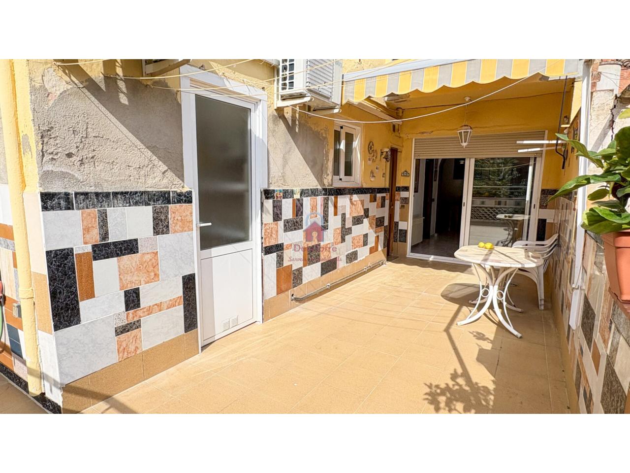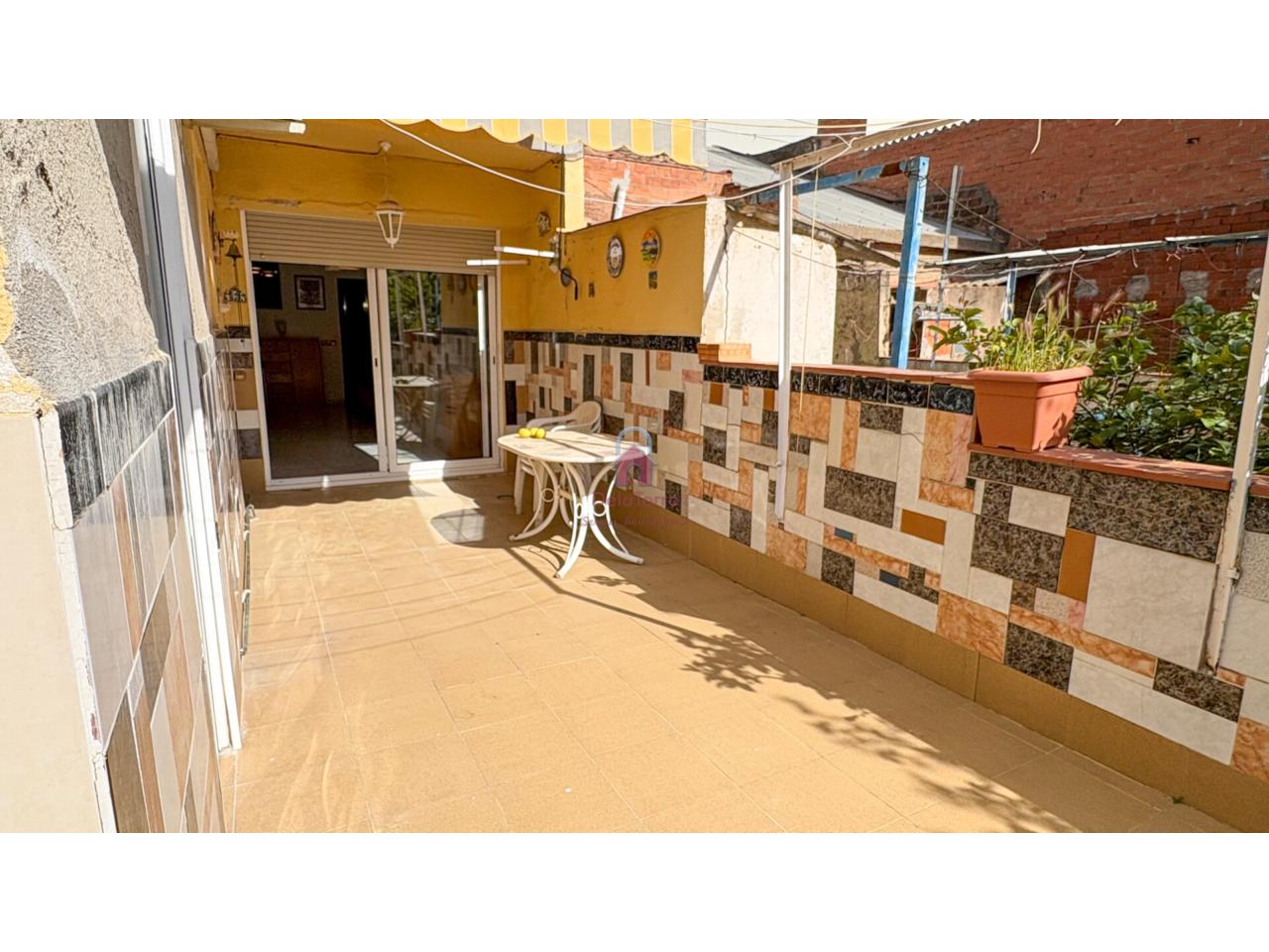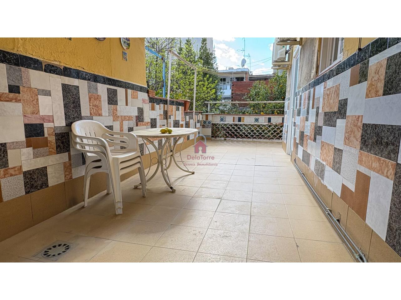 Vivienda tipo casa en venta con un amplio comedor exterior con salida a Terraza de 19m² Orientada a Oeste. Desde la terraza bajamos al espectacular patio de 35m² con barbacoa. Cocina independiente con salida a la terraza, un baño completo con plato de ducha de obra, y en la zona de noche tenemos tres habitaciones todas dobles. Un práctico lavadero en la terraza y un trastero con acceso desde el patio.