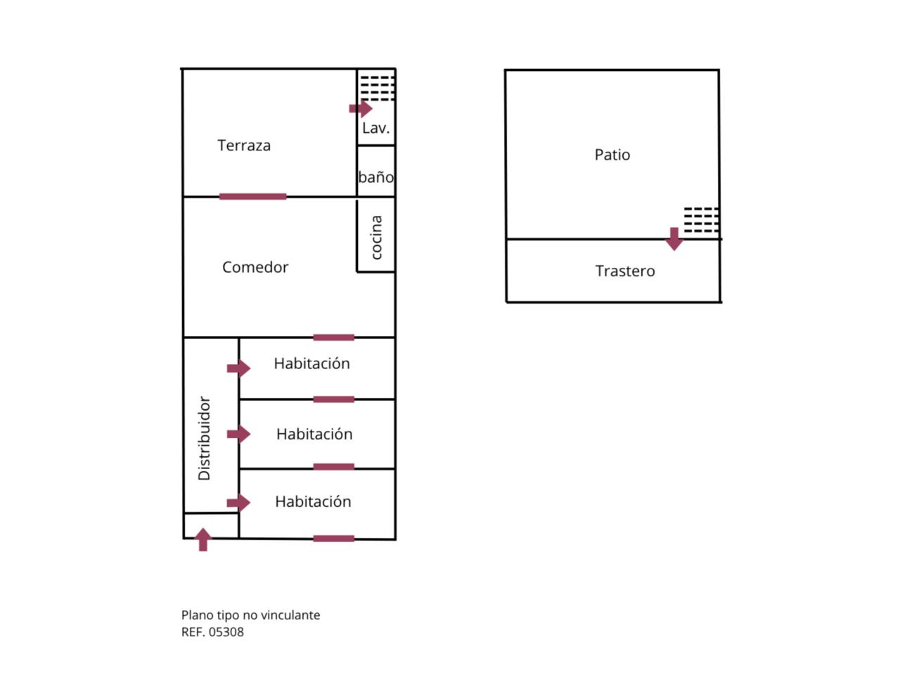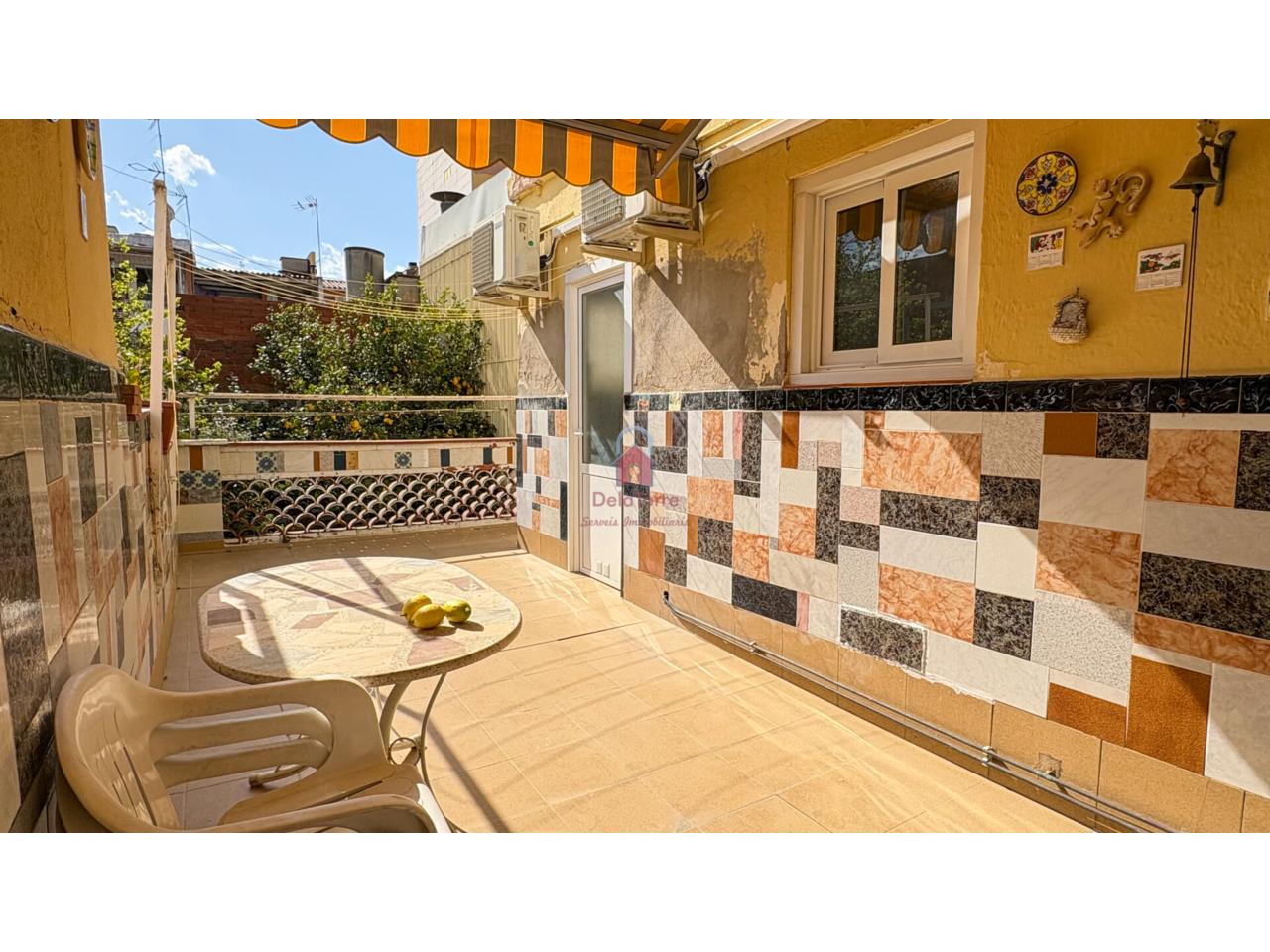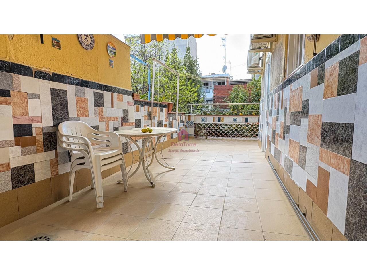 Vivienda tipo casa en venta con un amplio comedor exterior con salida a Terraza de 19m² Orientada a Oeste. Desde la terraza bajamos al espectacular patio de 35m² con barbacoa. Cocina independiente con salida a la terraza, un baño completo con plato de ducha de obra, y en la zona de noche tenemos tres habitaciones todas dobles. Un práctico lavadero en la terraza y un trastero con acceso desde el patio.