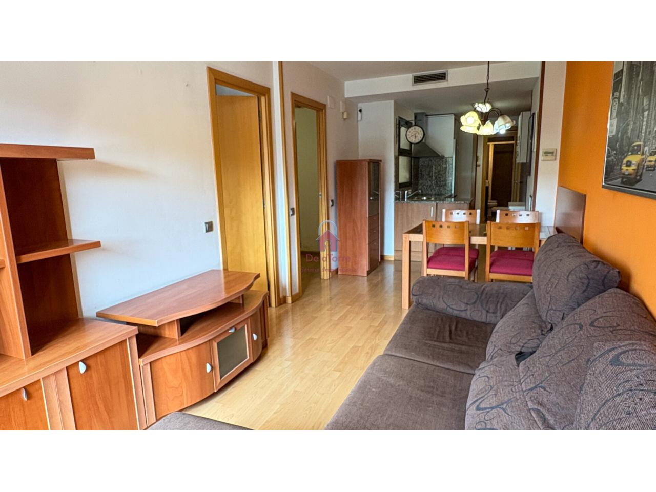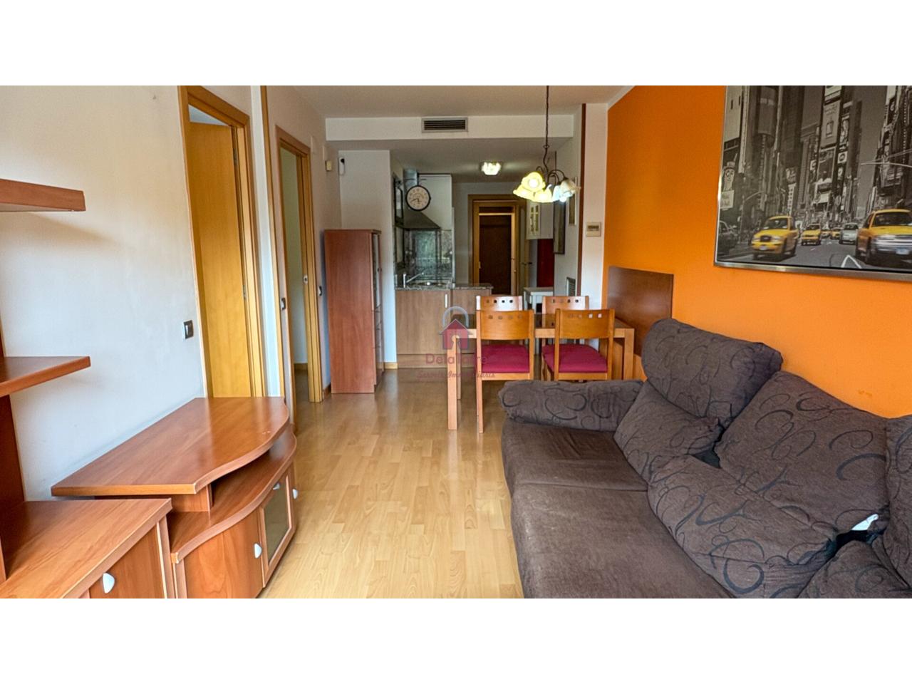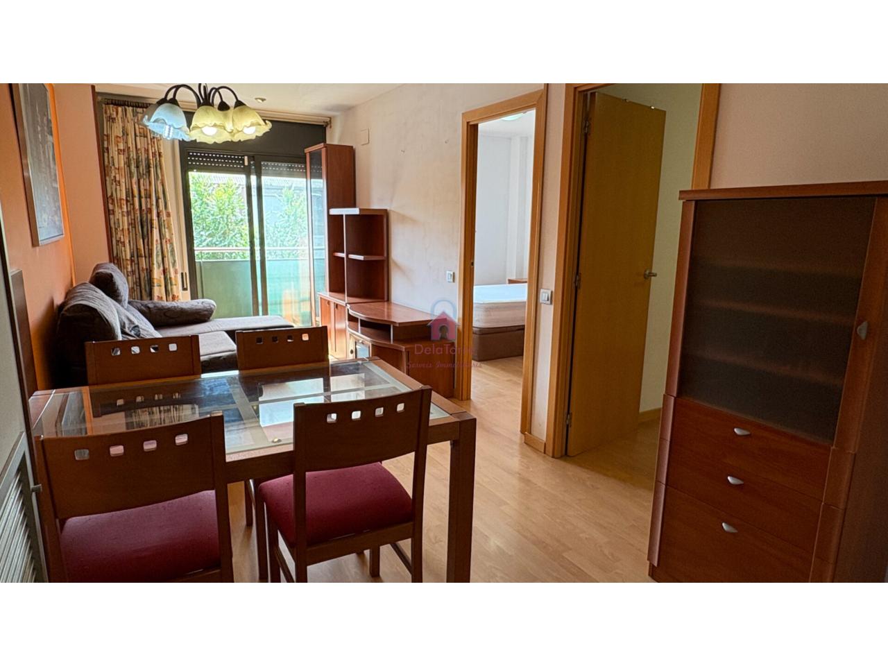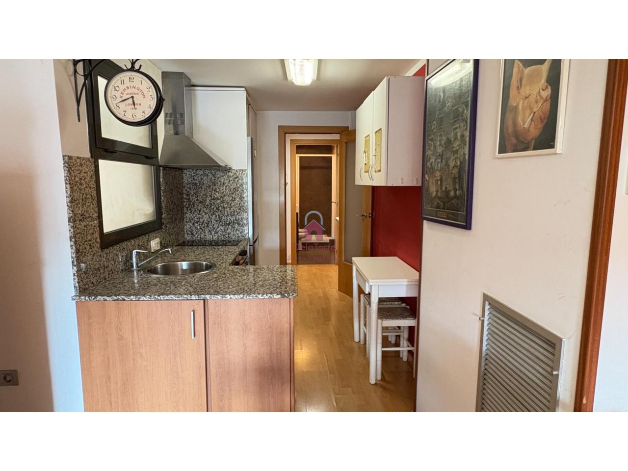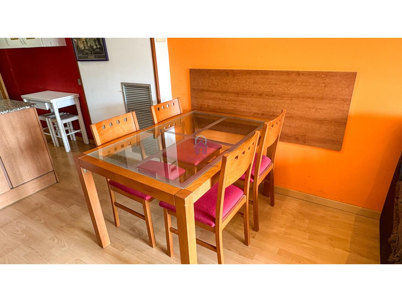 Con comedor con salida a balcón tipo mirador orientado a sur, cocina abierta al comedor, dos habitaciones (una doble, la individual con salida a patio de vecinos de 10m²) y un baño con ducha.