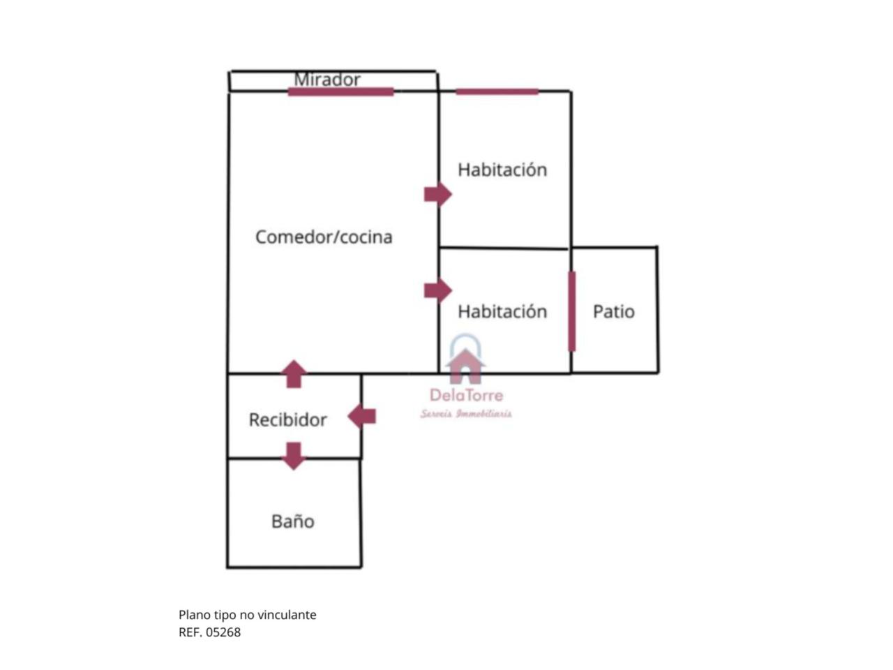 Características principales: · Comedor con salida a mirador. · Balcón tipo mirador. · 2 habitaciones. · Patio de vecinos 10m². · Baño con ducha. · Orientación Sur.