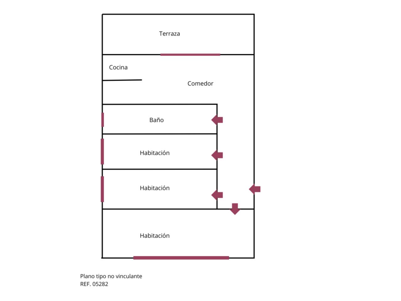 Características Principales: · 3 habitaciones (una triple de 14m²). · Baño con ducha. · Comedor exterior a terraza. · Terraza de 20m². · Zona de lavadero. · Casa madera tipo trastero en terraza.