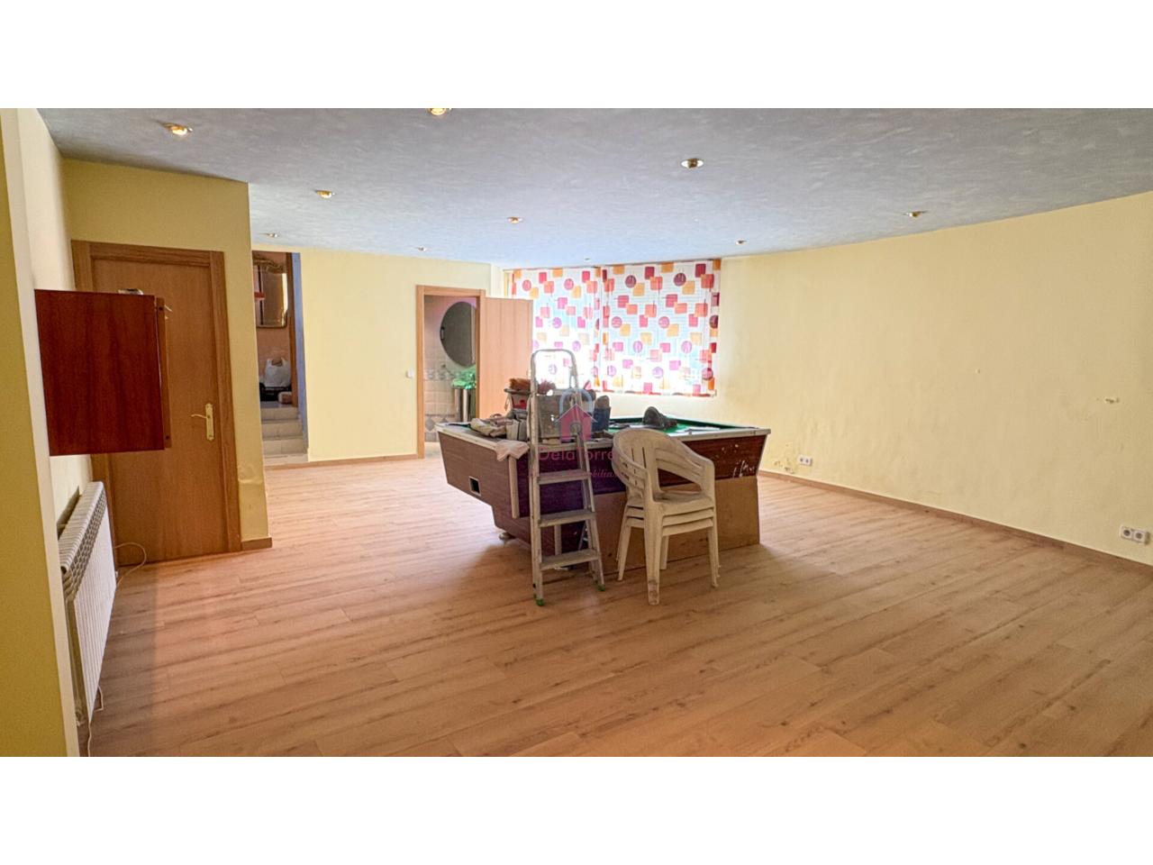 Vivienda en venta en planta a pie de calle nos encontramos con una amplia sala o zona polivalente de 47m², un baño, dos habitaciones y garaje de 20m². Subimos a la planta principal y desde el distribuidor accedemos a la zona de noche con tres habitaciones (dos dobles, la principal con baño con bañera), otro baño de cortesía en distribuidor y pasamos a la zona de día con un amplio y luminoso comedor con chimenea, cocina tipo office que da acceso a la terraza con zona de lavadero y desde esta terraza subimos a la espectacular terraza con excelentes vistas de 95m² con un práctico estudio de 30m y zona de barbacoa.