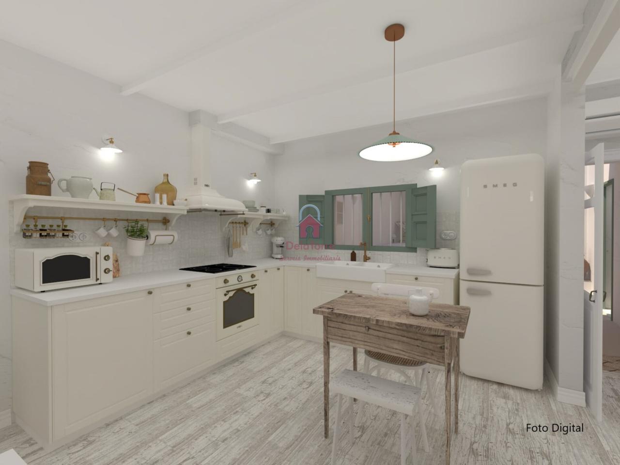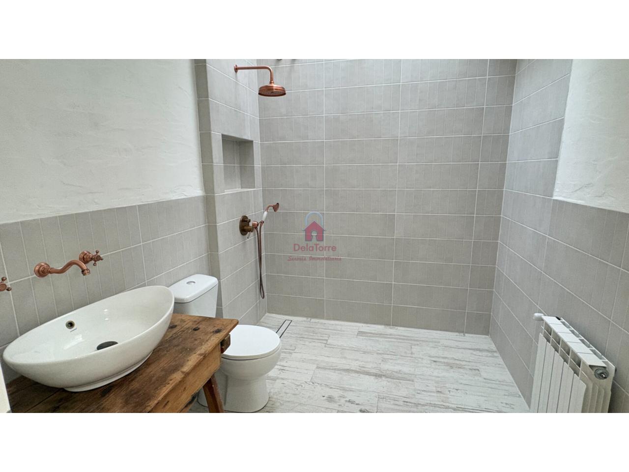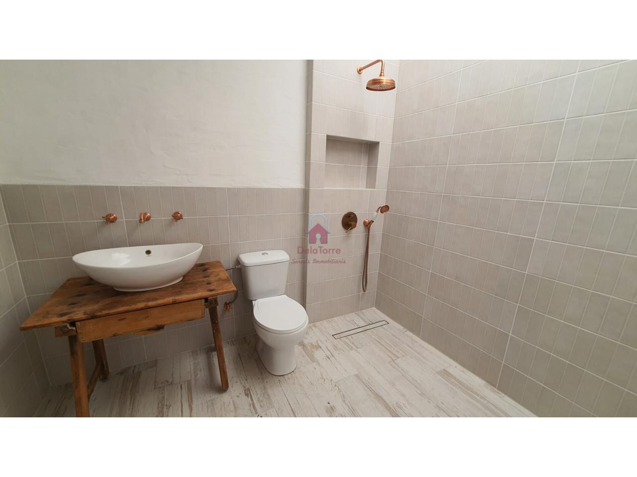 Los acabados de la casa en venta son de gran calidad: · Calefacción de gas natural. · Aire Acondicionado, con Bomba de calor en Comedor. · Se ha revestido el suelo del interior con baldosas de porcelánico efecto madera blanca decapada. · Las paredes y techos han sido revestidas con mortero a la cal y pintadas a la cal. · En los techos se han dejado las vigas de hierro a la vista y puertas de madera plafonadas. · Ventanas de aluminio y de madera con doble cristal climalit y porticones, pintadas en un verde eucalipto. Todas las ventanas tienen rejas. · El baño se ha revestido de baldosas neutras y paredes encaladas, con luz natural a través de su lucernario sobre la ducha de obra, muy práctica, a nivel del suelo y con hornacina. · En la cocina, la distribución está hecha y todas las instalaciones están listas. · Con el frente revestido de pequeñas baldosas irregulares y con bonitos interruptores y enchufes de porcelana, como los antiguos mecanismos de las casas de pueblo y que los encontramos en todas las estancias.