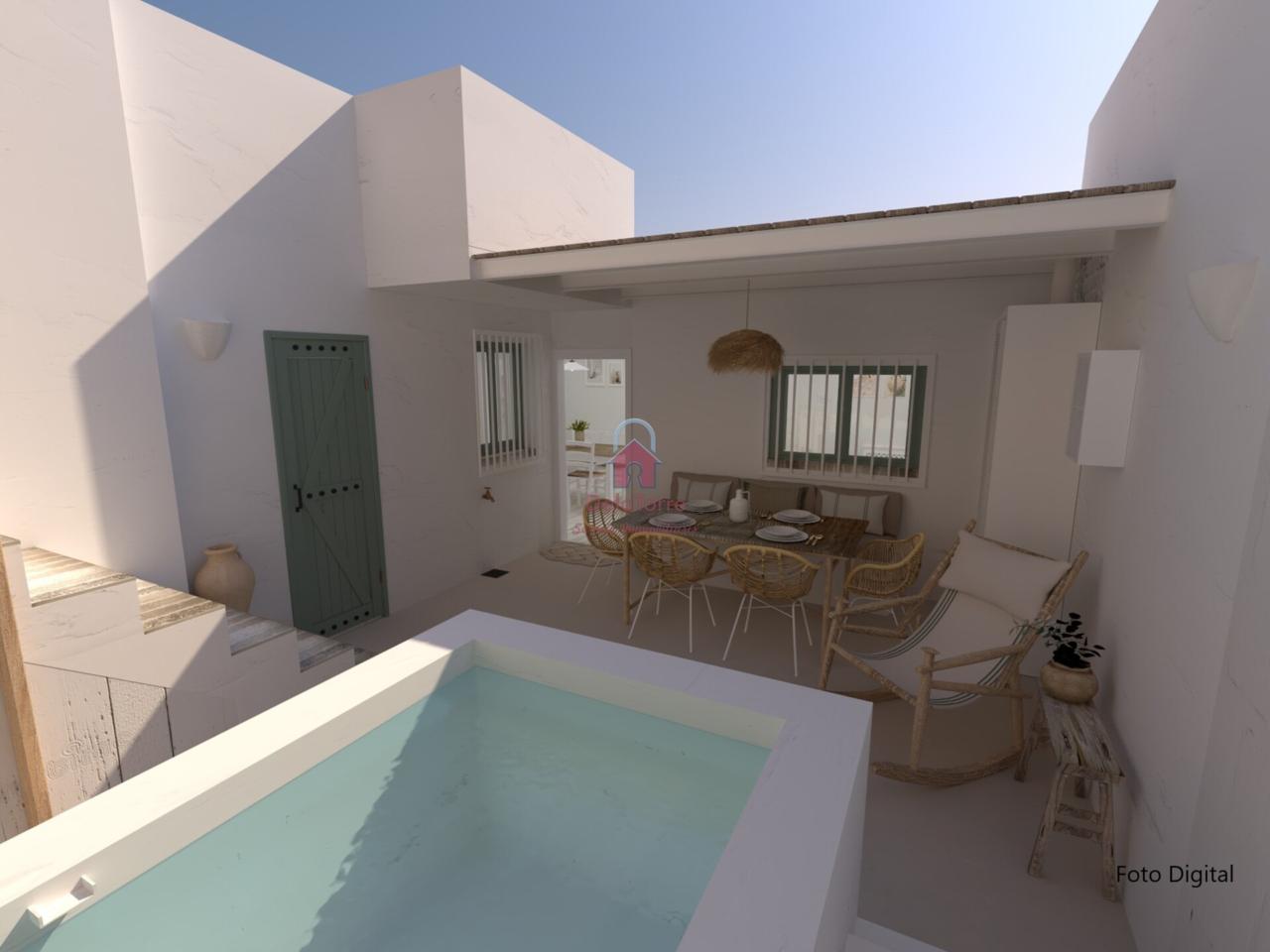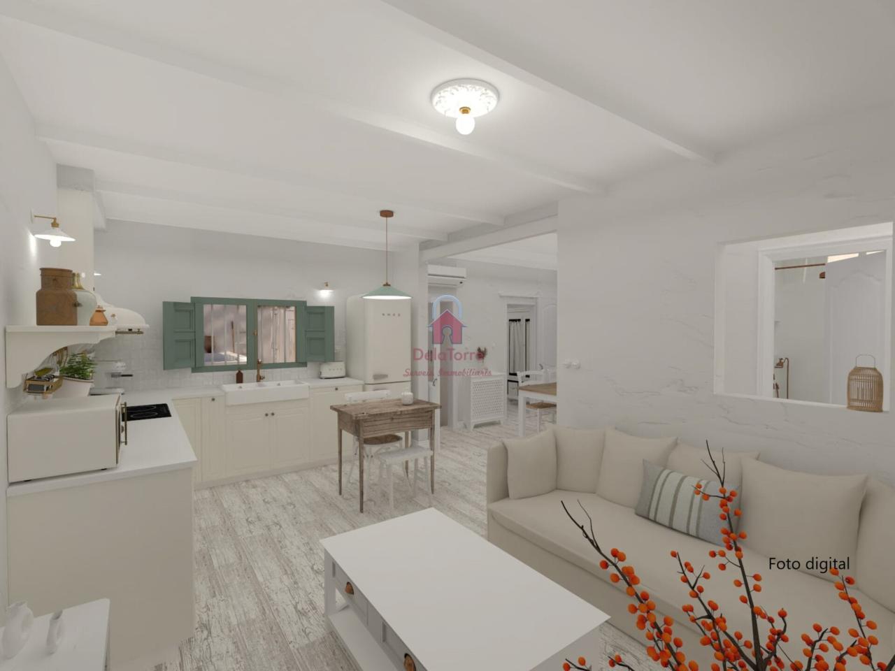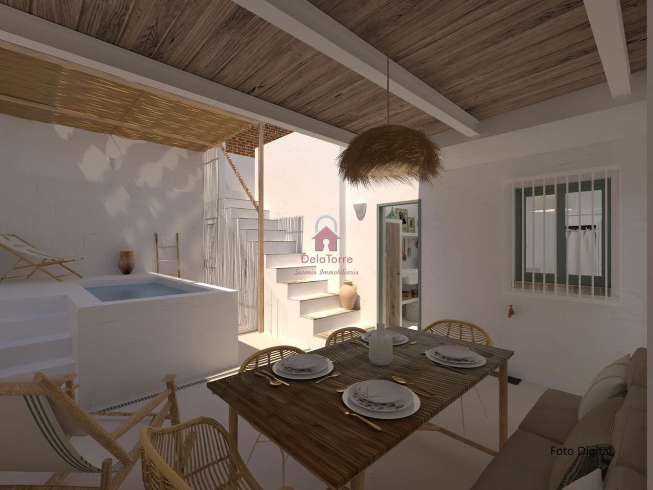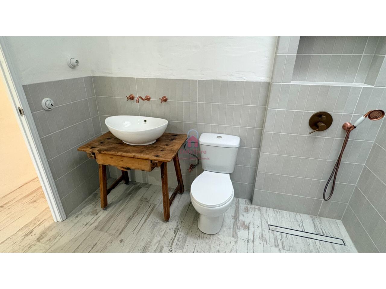 Los acabados de la casa en venta son de gran calidad: · Calefacción de gas natural. · Aire Acondicionado, con Bomba de calor en Comedor. · Se ha revestido el suelo del interior con baldosas de porcelánico efecto madera blanca decapada. · Las paredes y techos han sido revestidas con mortero a la cal y pintadas a la cal. · En los techos se han dejado las vigas de hierro a la vista y puertas de madera plafonadas. · Ventanas de aluminio y de madera con doble cristal climalit y porticones, pintadas en un verde eucalipto. Todas las ventanas tienen rejas. · El baño se ha revestido de baldosas neutras y paredes encaladas, con luz natural a través de su lucernario sobre la ducha de obra, muy práctica, a nivel del suelo y con hornacina. · En la cocina, la distribución está hecha y todas las instalaciones están listas. · Con el frente revestido de pequeñas baldosas irregulares y con bonitos interruptores y enchufes de porcelana, como los antiguos mecanismos de las casas de pueblo y que los encontramos en todas las estancias.